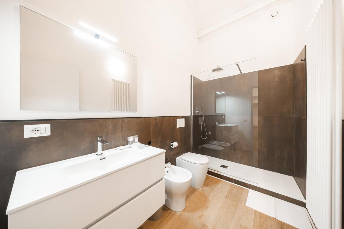 Camera Matrimoniale Superior. Providing free toiletries and bathrobes, this double room includes a private bathroom with a shower, a bidet and a hairdryer. The well-equipped kitchen features a refrigerator, kitchenware and a microwave. The spacious air-conditioned double room provides a flat-screen TV with cable channels, a private entrance, a tea and coffee maker, a seating area as well as city views. The unit offers 2 beds.
