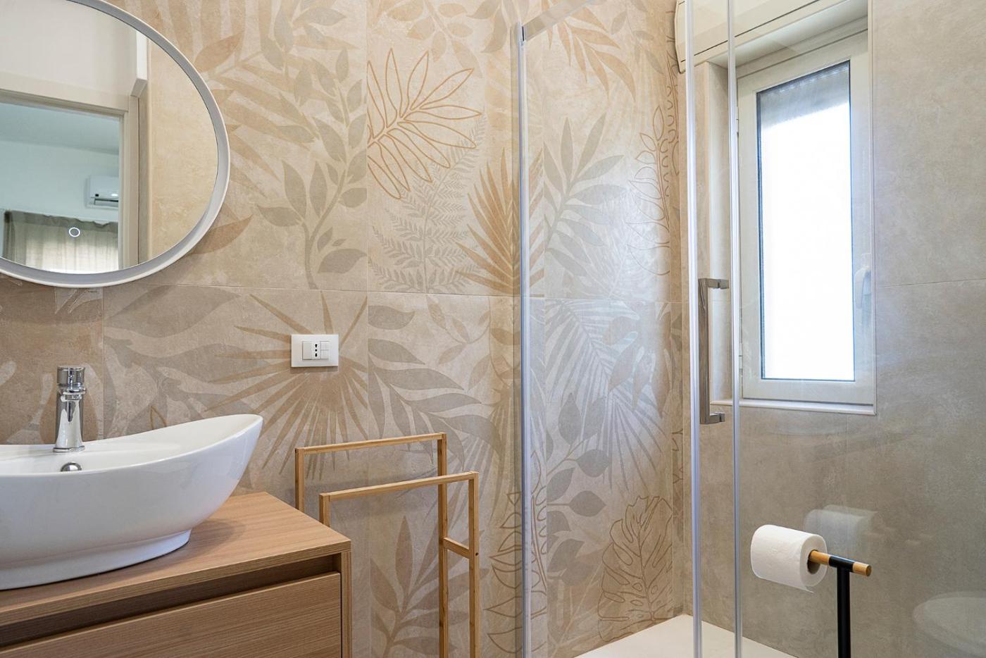 Camera Quadrupla con Bagno. Featuring free toiletries, this quadruple room includes a private bathroom with a shower and a hairdryer. The fully equipped kitchen features a stovetop, a refrigerator, kitchenware and an oven. This quadruple room is air-conditioned and has a seating area with a flat-screen TV, a washing machine, a tea and coffee maker, a dining area, as well as a wardrobe. The unit has 2 beds.