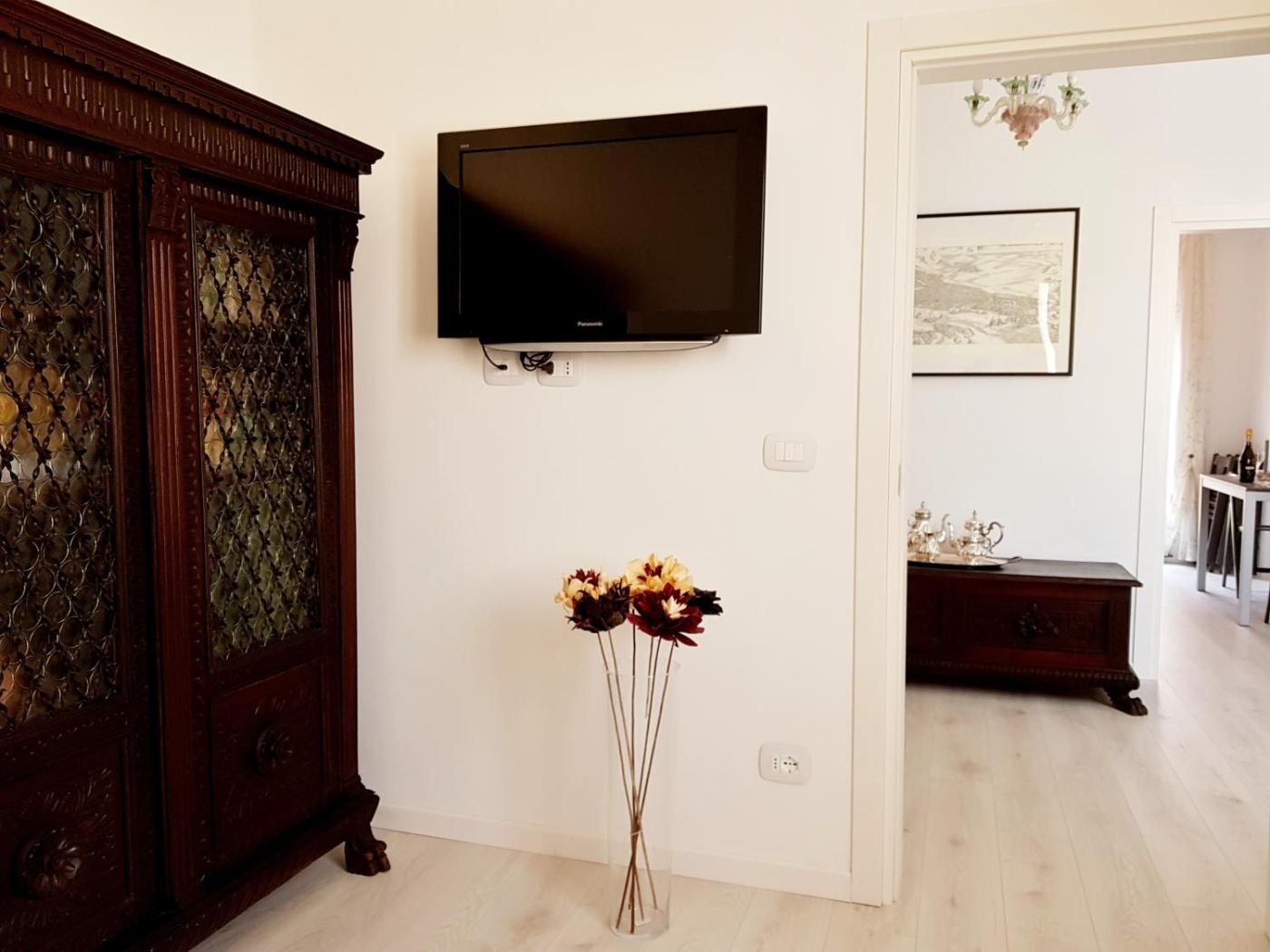 Appartamento con 2 Camere da Letto. This spacious apartment features 1 living room, 2 separate bedrooms and 1 bathroom with a walk-in shower and a bidet. The fully equipped kitchen has a stovetop, a refrigerator, a dishwasher and kitchenware. The air-conditioned apartment features a flat-screen TV, a washing machine, a tea and coffee maker, a seating area as well as garden views. The unit has 3 beds.
