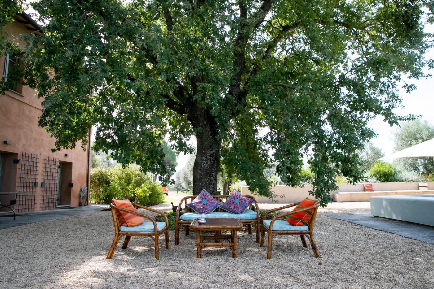 Suite Garden. Spaziosa suite con accesso diretto dal giardino e vista sulla campagna circostante. L’alloggio comprende una zona giorno e un bagno privato. ;